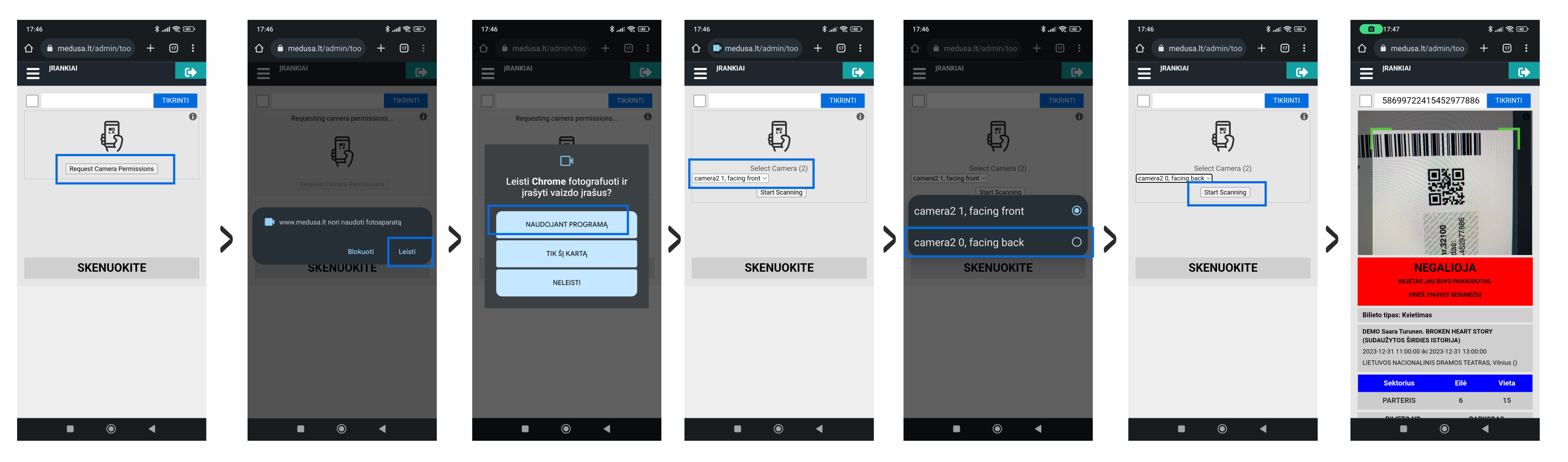 BILIETŲ SKENAVIMAS SU TELEFONO KAMERA PER NARŠYKLĘ: